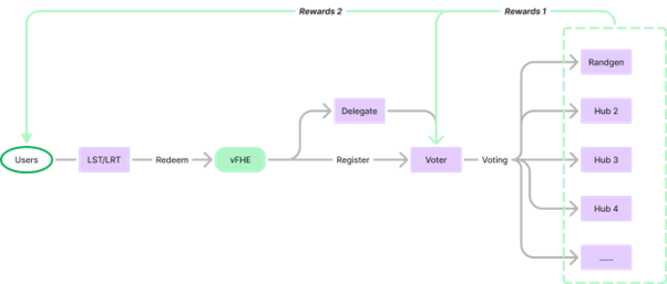 2. 委托赚取奖励:将 $vFHE 委托至 RandGen Hub,参与共识投票并获取额外奖励;